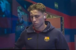 费尔明在热身训练中受了点小伤,因此球队大巴到达集中酒店时他并未与队友们一同出现,而是稍后才加入。在随后的一些照片中,可以看到费尔明额头贴着一块创可贴,并且有一个明显的肿块。巴萨中场是目前队内四名面临停赛风险的球员之一,其他三人分别是亚马尔、赫拉德·马丁和卡萨多。